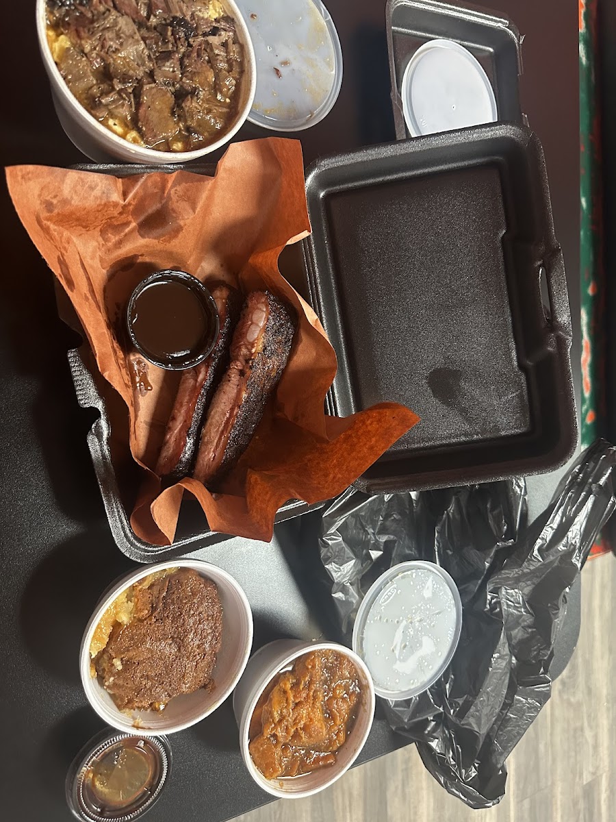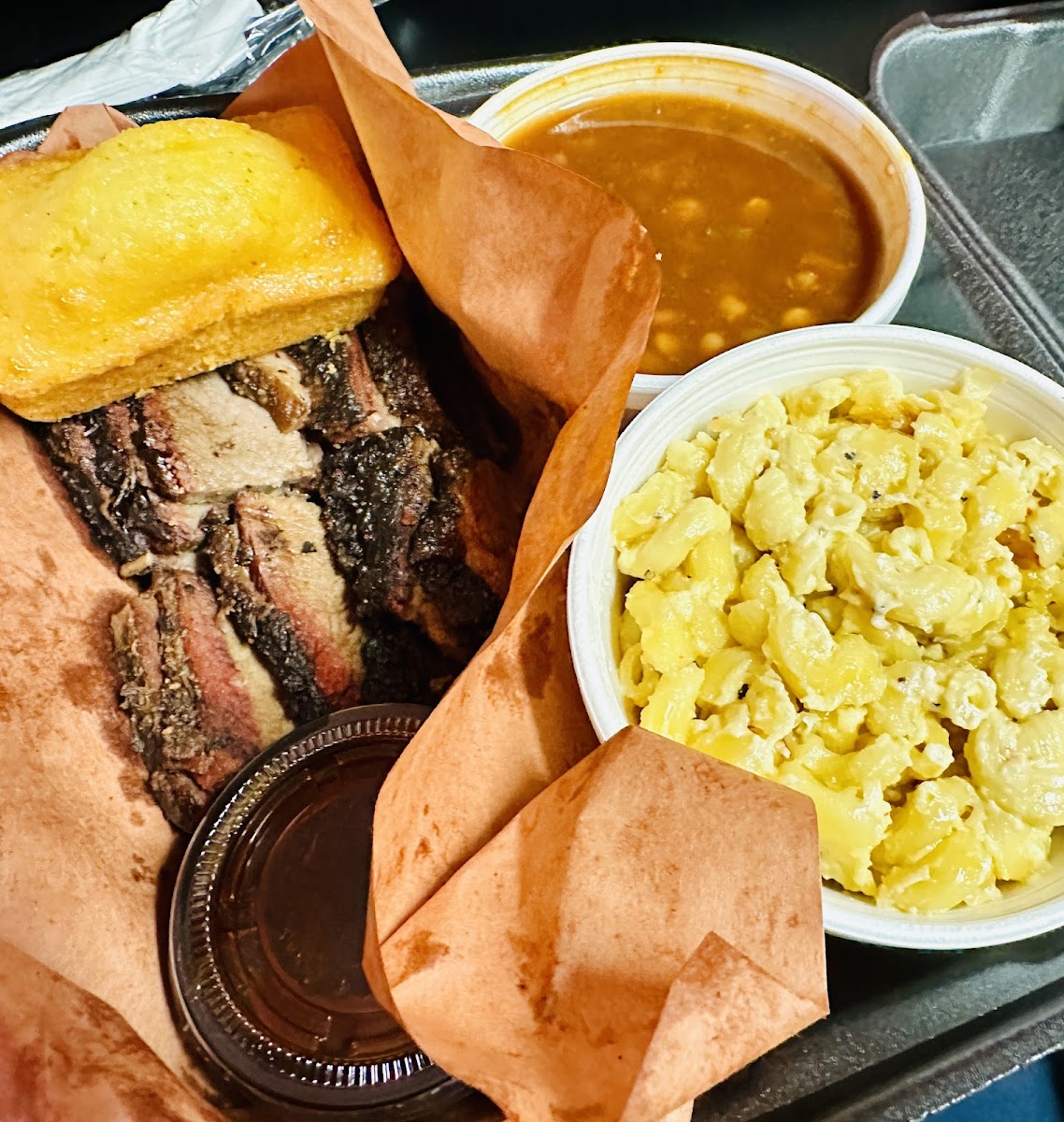 The Brisket Plate with Mac and Cheese, Baked Beans, and Candied Yams is another standout on the menu. The brisket is perfectly smoked, with just the right amount of fat and a smoky crust that will melt in your mouth. It’s paired with creamy mac & cheese, sweet and savory candied yams, and flavorful baked beans that are sure to complement the richness of the meat.
